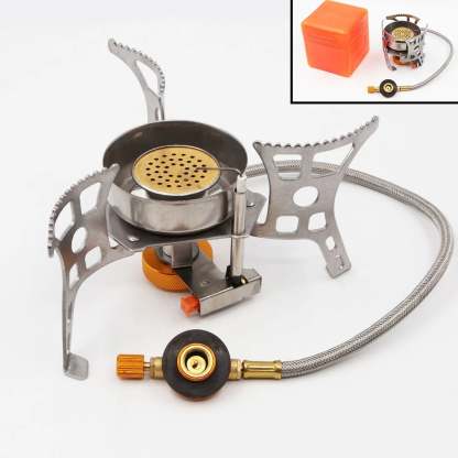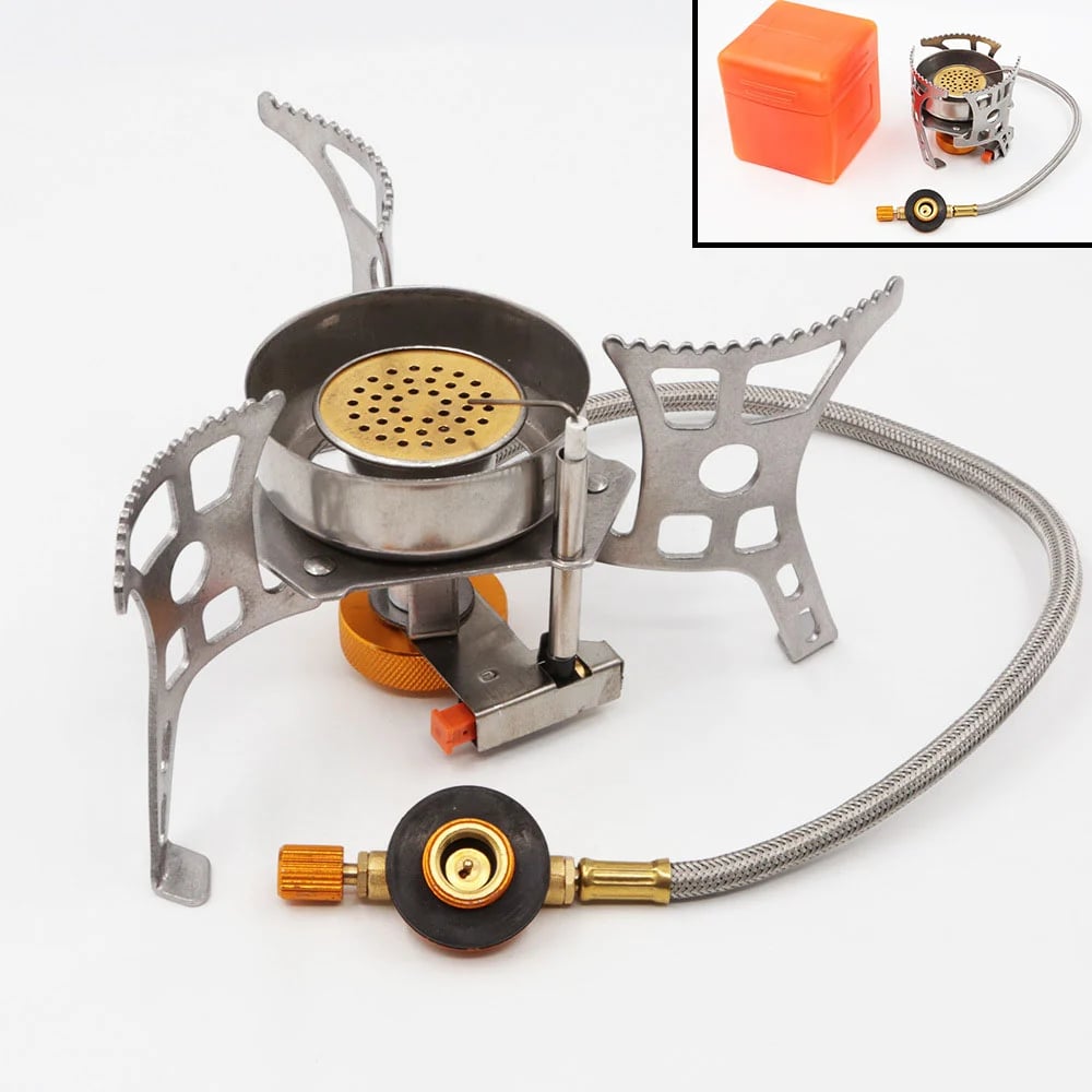 This camping stove has piezoelectric ignition; the valve with built-in thickened seal does not leak. Using the built-in flame control knob, you can adjust the flame to your needs.