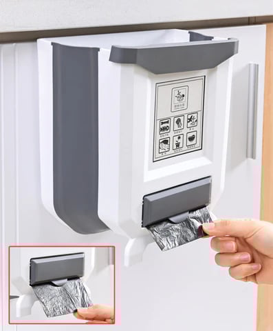 Portable and Foldable The foldable and hangable design greatly saves space. It can be folded when not in use. Keep your home tidy: As there are drawers with trash bags, plastic bags can be drawn and used at any time, and trash goes directly into the trash can.