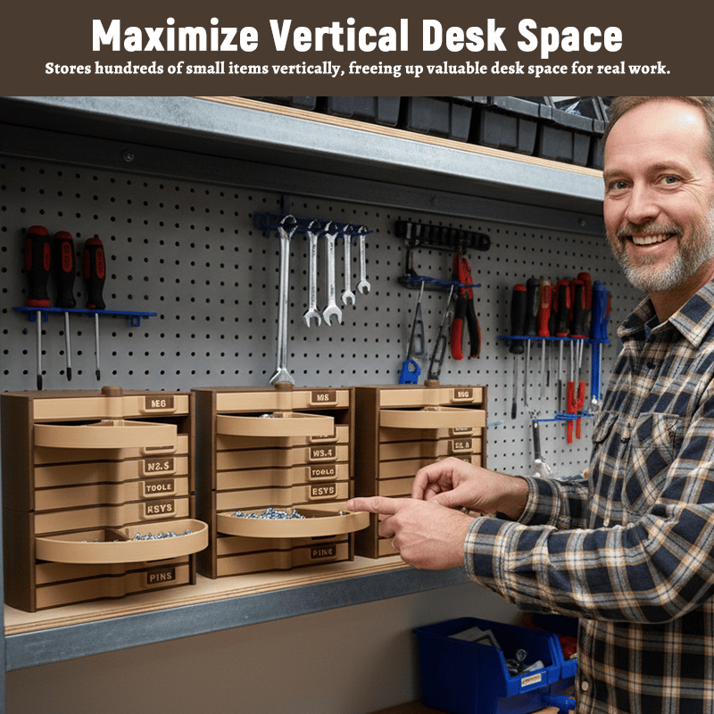 Stop digging through clutter! 🛠️ Fan out your entire hardware collection in one smooth motion with this vertical tower that doubles your desk space and keeps every screw visible at a glance ✨📦